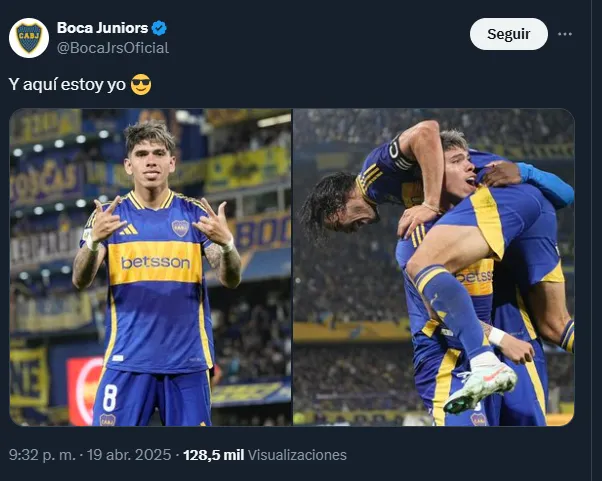 Mientras que la cuenta oficial de Boca Juniors le dedicó una publicación especial con dos fotografías del partido. “Y aquí estoy yo”, escribieron acompañada de las instantáneas.