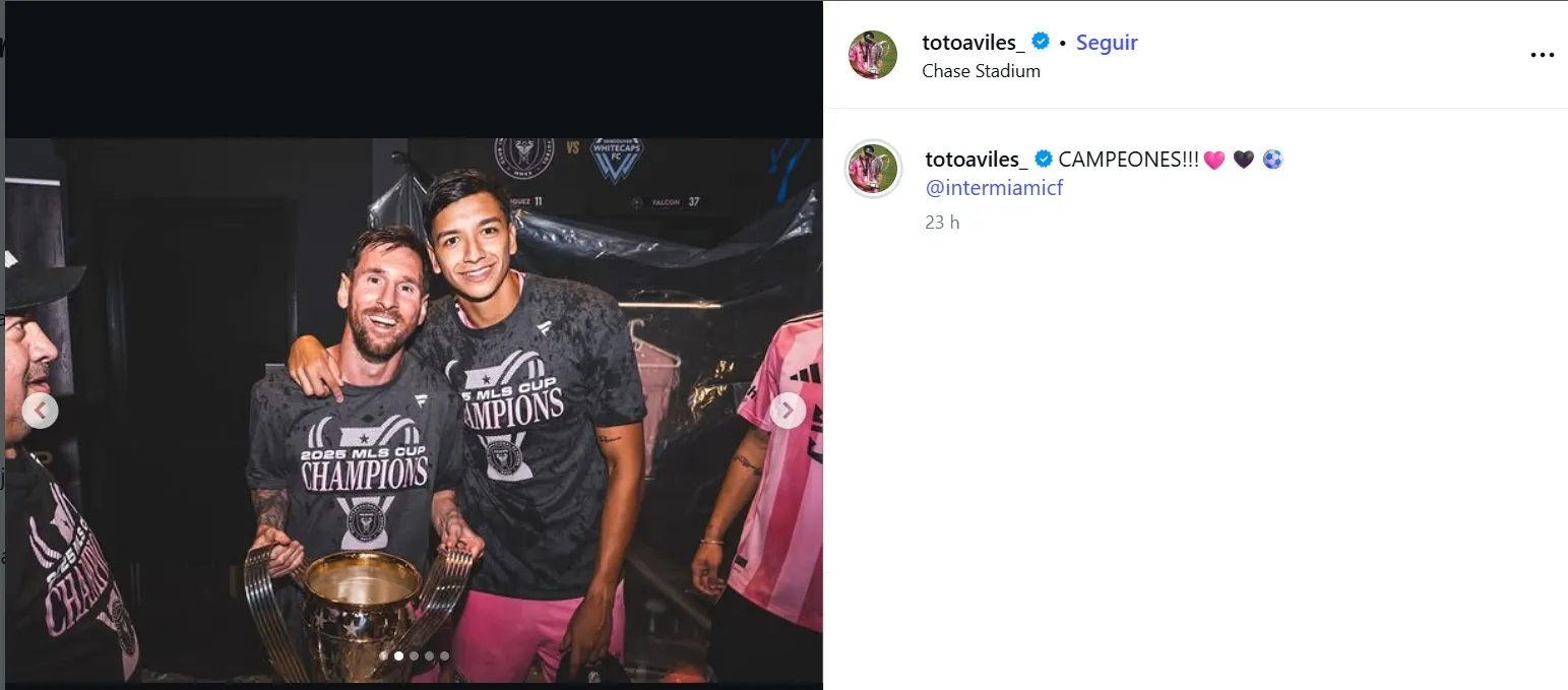 Tomás Avilés, jugador argentino-chileno de 21 años, se coronó campeón junto al elenco norteamericano, donde tuvo una gran participación y se ha posicionado como una de las piezas fundamentales de la escuadra que dirige Javier Mascherano, donde ha disputado 27 partidos este 2025 anotando en dos oportunidades.