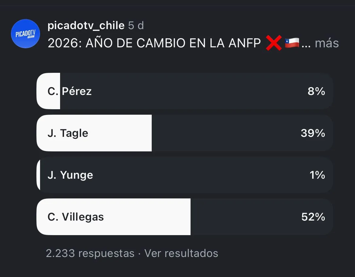Fue en una encuesta del medio PicadoTV Chile donde consultaron por los candidatos a ser presidente de la ANFP, Siendo Villegas quien se quedó con el primer lugar con el 52% de las preferencias.