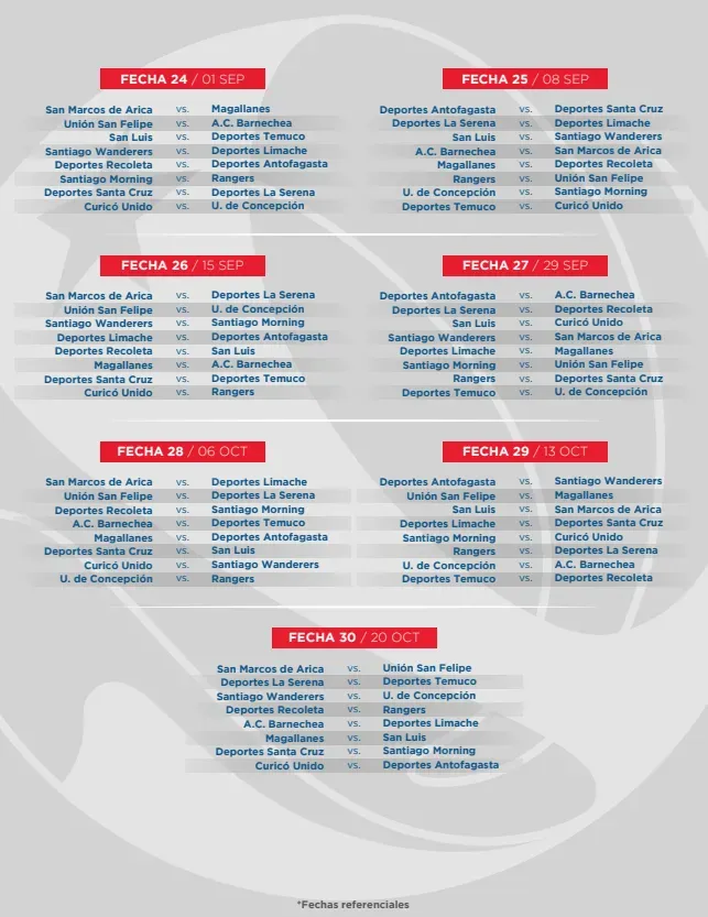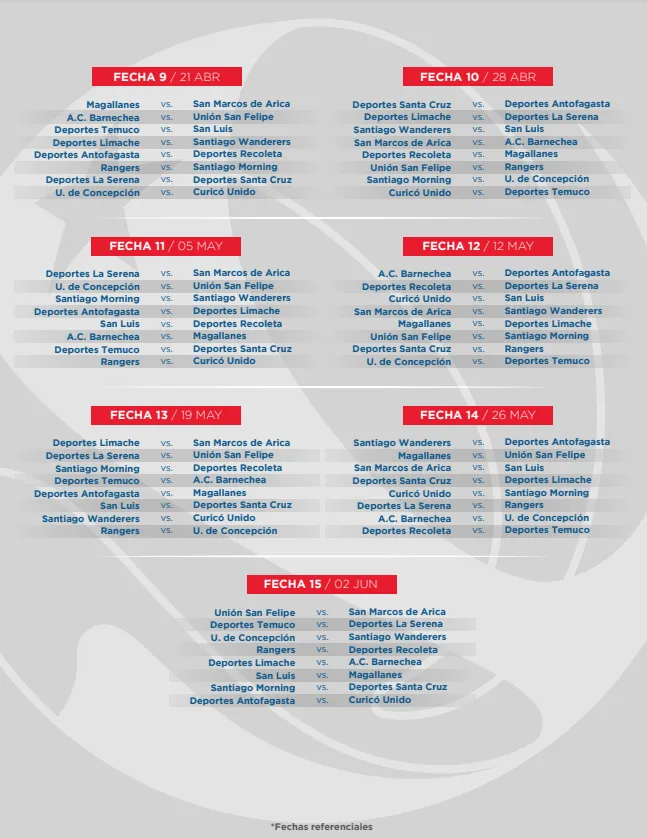 Luego de semanas de espera, este miércoles se conoció la programación de las fechas que darán vida al certamen. En ellas destacan su inicio y su temprano final, mucho antes que el del Campeonato Nacional.