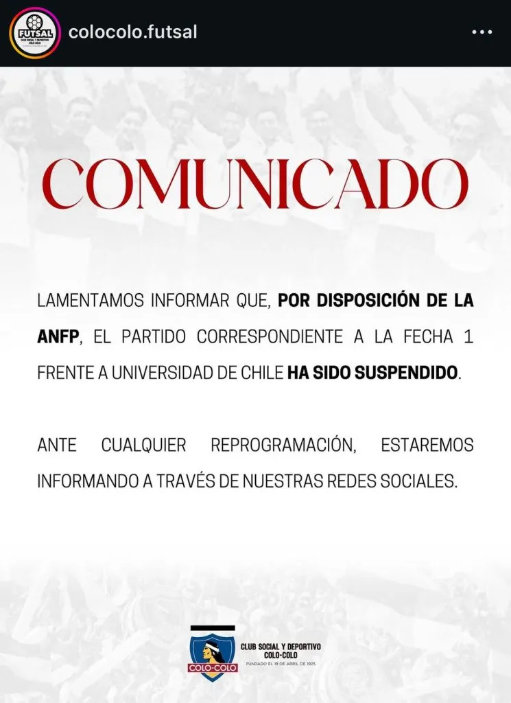 La primera fecha de la Liguilla Final del Futsal tenía como uno de sus más importantes compromisos el duelo entre Colo Colo vs Universidad de Chile, el que tuvo que ser suspendido al entretiempo.