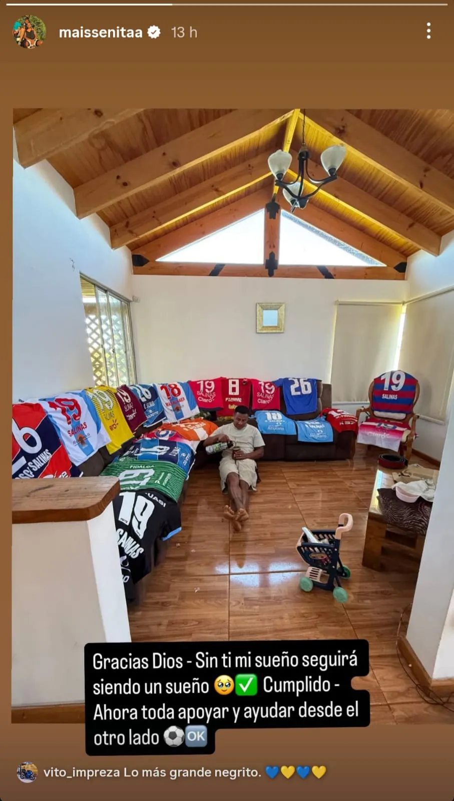 “Gracias Dios. Sin ti mi sueño seguirá siendo un sueño… Cumplido. Ahora toca apoyar y ayudar desde el otro lado”, tecleó el ahora ex futbolista. Los mensajes de no se hicieron esperar, siendo replicados en las historias de Salinas.