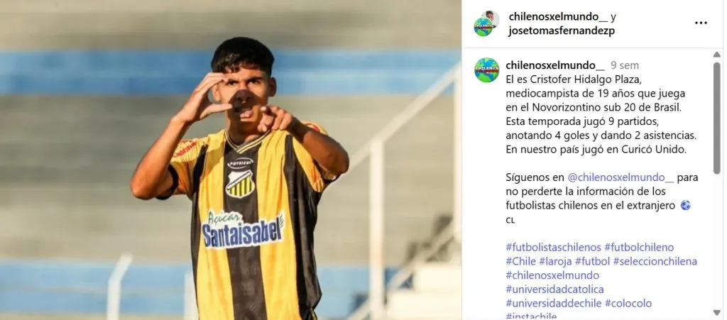 En la misma línea, al ser consultado por la nómina y los pocos jugadores chilenos que juegan en el extranjero, comentó que le llama la atención. “Porque para mí el Campeonato Brasilero es más fuerte que el de Chile en Sub 20. Tomás Roco viene haciendo un campeonato bueno. Yo venía viendo sus partidos: él venía haciendo goles y asistencias. Se me hizo raro que no estuviera entre los 21 convocados”.
