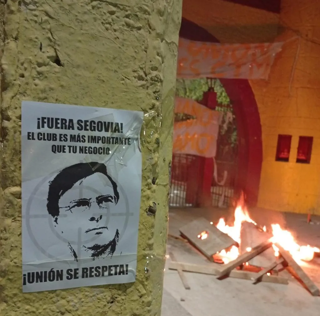 “Fuera (Jorge) Segovia. El club es más importante que tu negocio”. Con esa frase en los afiches, Unión Española realizaron una protesta contra la administración del club, en medio de la crisis del equipo.