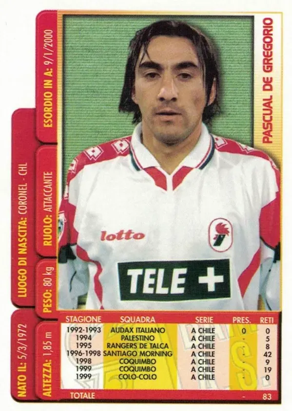 Pascual de Gregorio fue un goleador chileno que tuvo una gran temporada en 1999, cuando defendía los colores de Coquimbo Unido. Anotó 19 goles en 39 partidos, un rendimiento que llamó la atención de un equipo del fútbol italiano. El Bari.