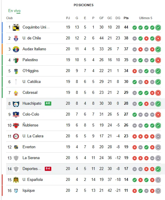 Tabla de posiciones tras Huachipato 4-0 Deportes Limache en la Liga de Primera
