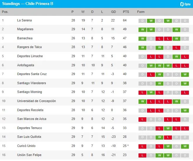 En cuanto al descenso, Barnechea ya está sentenciado tras al castigo administrativo que los dejó con 2 puntos (en la imagen de la tabla aún mantiene su puntaje deportivo). Por ello, Curicó y Unión San Felipe ya pueden respirar tranquilos.
