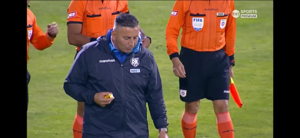 Al volver del descanso, las imágenes de TNT Sports se fueron con Jaime García, quien ingresó a la cancha comiendo una manzana, captando rápidamente la atención de los hinchas.