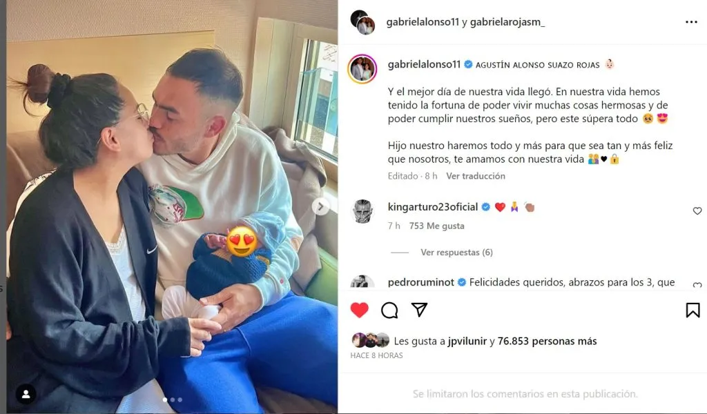 Pero a nivel personal, Suazo también vivía desde hace un tiempo una época especial. Y es que, junto con su novia, se disponía a ser papá. Y este domingo el ex Colo Colo presentó a su hijo recién nacido, Agustín, retoño en sociedad, con un emotivo mensaje.