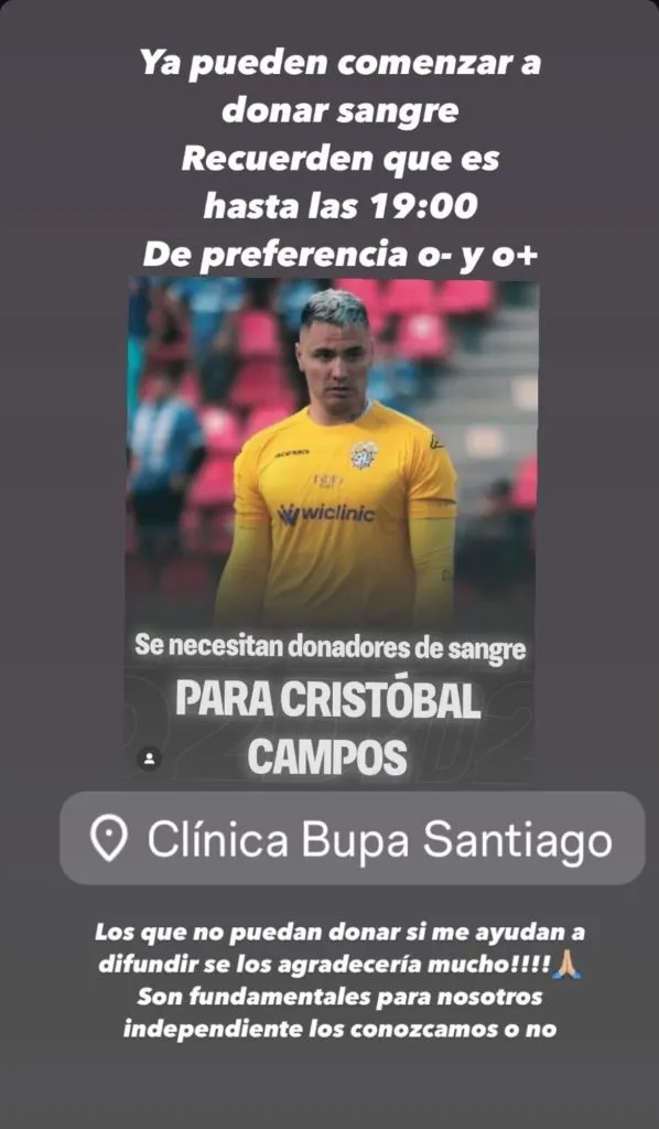 “Ya pueden comenzar a donar sangre. Recuerden que es hasta las 19.00 horas, de preferencia o- y o+”, detalló en su primera información la hermana de Cristóbal Campos.