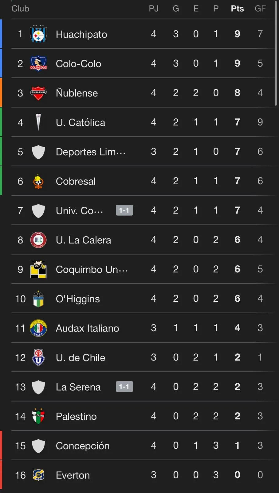 Un empate que deja a La Serena en el lugar 13 de la tabla de posiciones con dos unidades, mientras que Universidad de Concepción está en el séptimo lugar con 7 puntos.