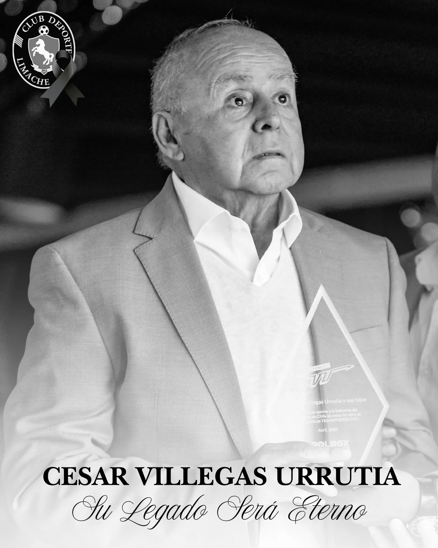 “Con profundo pesar informamos el fallecimiento de Don César Villegas Urrutia, ex directivo de Deportes Limache y padre de nuestro Presidente César Villegas Mena, partió diciendo el equipo, en sus redes sociales.