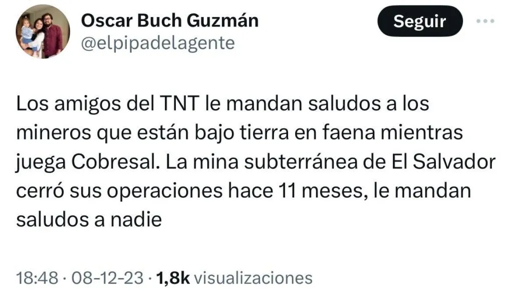El relator mandó saludos a los mineros que están en faena bajo tierra en la mina de El Salvador, sin embargo, en el ex Twitter le corrigieron señalando que esa mina cerró hace once meses y que su saludo había llegado solo un poco tardío considerando esa contingencia.