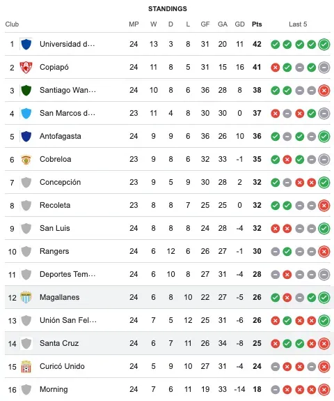 Cabe consignar que la fecha 25ª, programada entre el 12 y 15 de septiembre, será clave para Magallanes ya que recibe a Deportes Temuco. Mientras que Santa Cruz, que se queda en 25 unidades, visita a Santiago Wanderers que pelea por el liderato de la tabla.