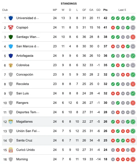 Con este resultado Magallanes sube a la posición 12ª con 26 unidades. Además, tras la derrota de Santiago Morning, le saca ocho puntos de distancia. Los microbuseros son colistas y peligran con el descenso a la Tercera División.
