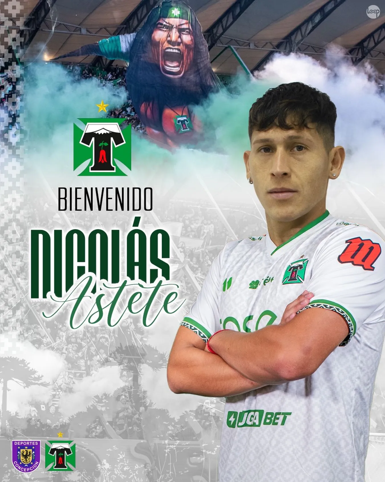 “Hoy damos la bienvenida a Nicolás Astete a la plantilla albiverde 2026; Volante central campeón de liguilla 2025 con 31 partidos disputados”, celebró el elenco albiverde.