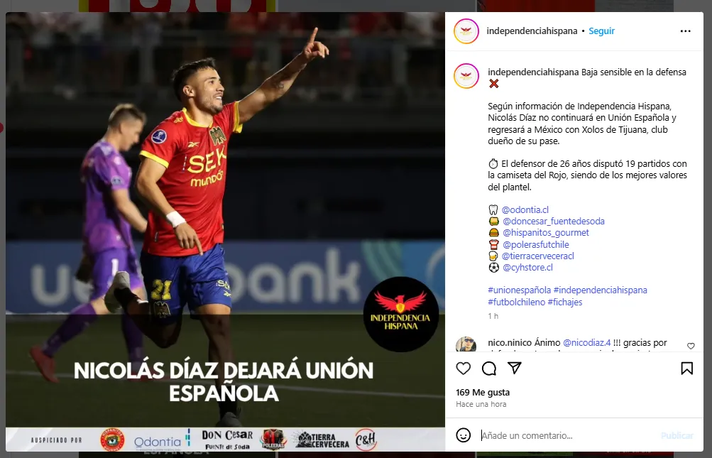 El temor de los hinchas hispanos se vuelve una realidad, aún más cuando Sabino Aguad, gerente general de Unión Española, lo advertía unos días atrás. “Nicolás Díaz tiene cláusula de salida. Puede ser efectiva en la primera rueda sólo al equipo que nos lo prestó“, expuso.