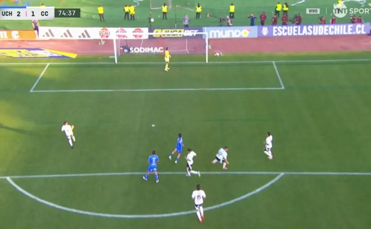 Pese a que las oportunidades no llovían, al menos sí goteaban. Cuando la U empezó a despertar, todo cambió. Un tiro desde fuera del área alba de Lucas Assadi terminó dando en el brazo extendido de Emiliano Amor, quien estaba dentro del rectángulo. Tras revisión en el VAR, Maza determinó que era penal.