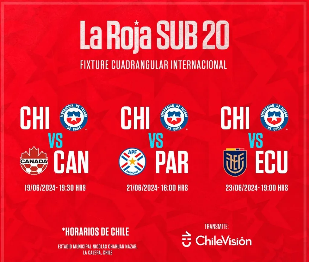 Todos estos partidos serán transmitidos en televisión abierta por Chilevisión, por lo que el hincha de la Roja tendrá la chance de conocer al futuro del fútbol chileno.