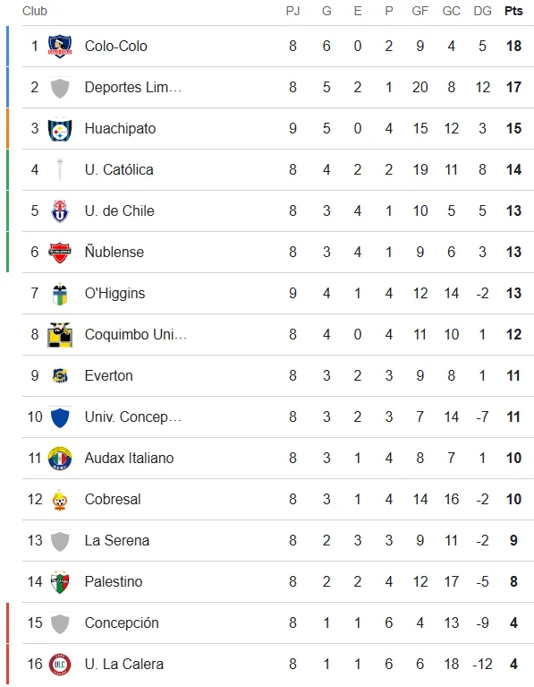 Con la victoria Huachipato trepa al tercer lugar con 15 puntos, mientras que O’Higgins se quedó con 13 puntos en la séptima plaza, pudiendo perder casilleros durante la fecha.