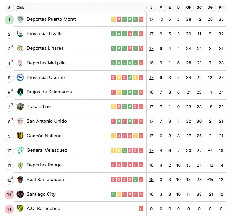 Los Bravos tienen 14 puntos en el puesto 11, mientras que los Chicos Buenos junto a los Ciudadanos suman apenas 12 unidades, siendo el City quien desciende a la Tercera División A, considerando de AC Barnechea renunció a jugar esta temporada.