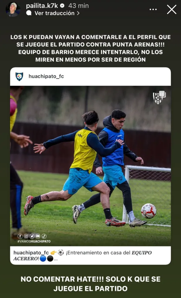 “Encuentro inaceptable lo que le pasó a mis hermanos de Punta Arenas (Club Deportivo Presidente Ibáñez) con el partido pendiente por la Copa Chile contra Huachipato”, comenzó su explicación en Instagram.
