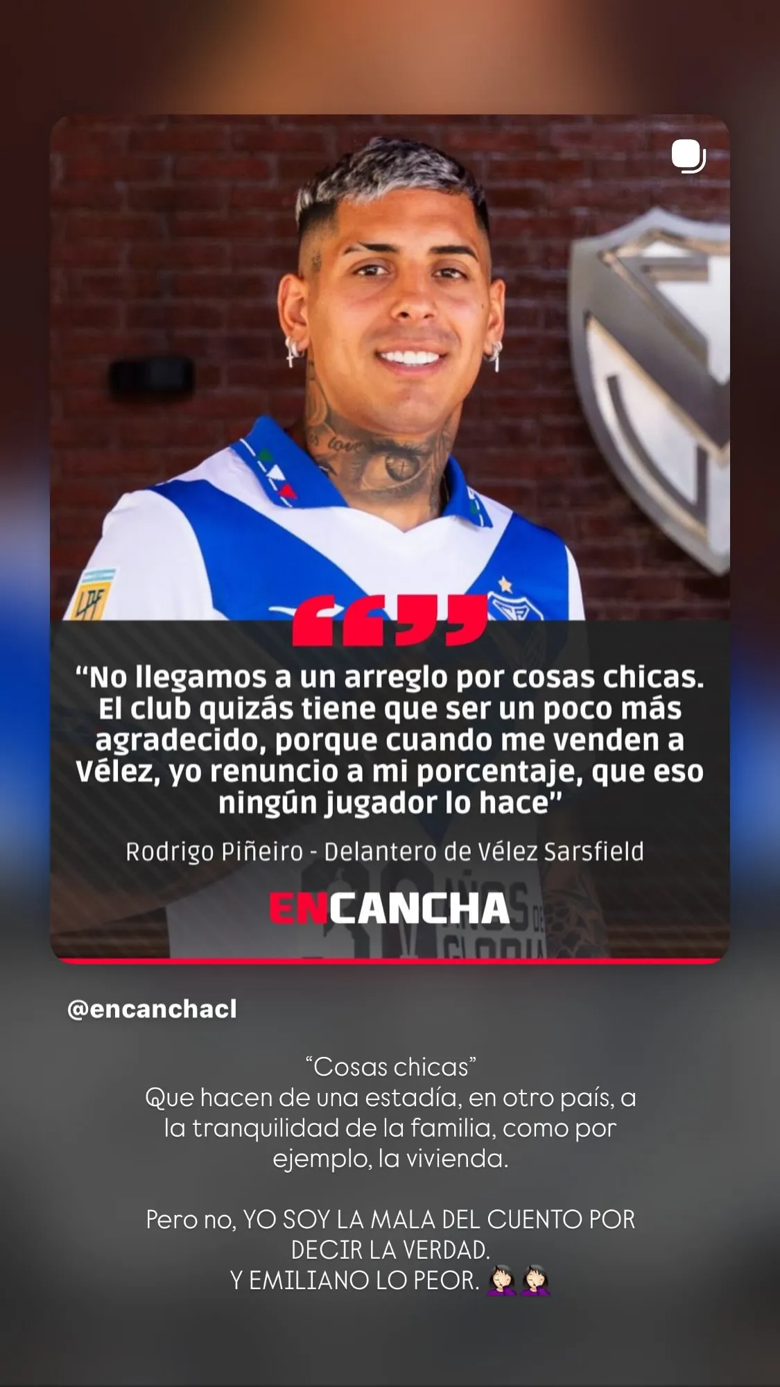 Pero Tissera fue más allá en sus dichos, cuando luego escribió que “‘cosas chicas’ que hacen de una estadía, en otro país, a la tranquilidad de la familia, como por ejemplo, la vivienda. Pero no, yo soy la mala del cuento por decir la verdad. Y Emiliano lo peor.