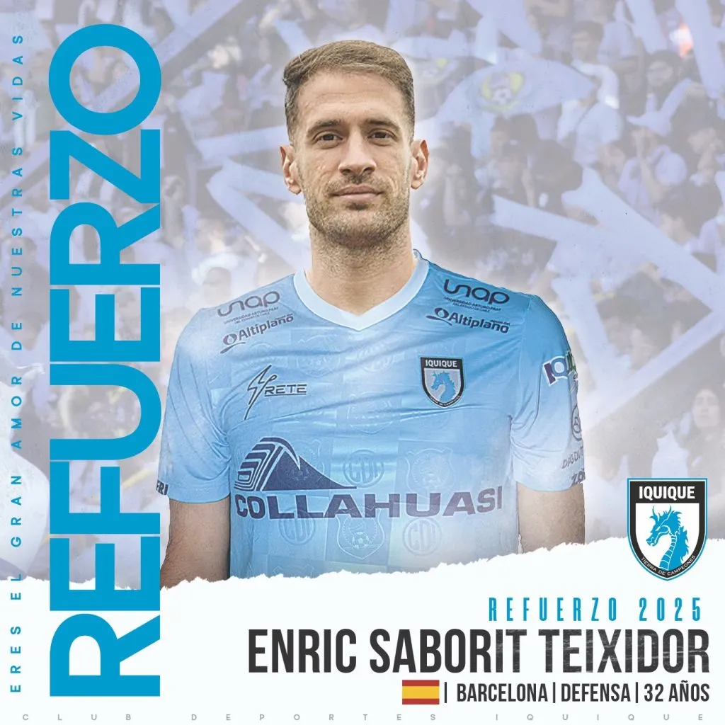 Enric Saborit es un futbolista de 32 años y juega de central. Deportes Iquique avisó que llega por la temporada 2025 a sumar su primera experiencia en Sudamérica. De paso, se convierte en el primer español en jugar en el equipo.