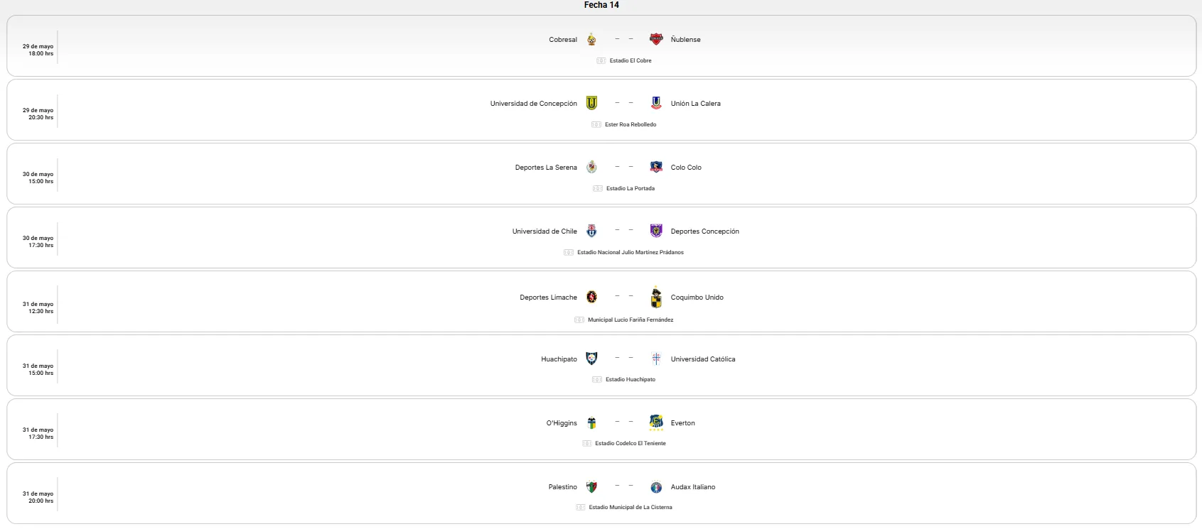 - Partidos clave para el liderato y la permanencia: Además de los derbis tradicionales, destacan encuentros como el de Deportes Limache vs. la UC el 16 de mayo, fundamental para la lucha por la cima, y el enfrentamiento de la U contra Deportes Concepción el 30 de mayo, donde el “León de Collao” buscará puntos vitales para salir del fondo de la tabla.