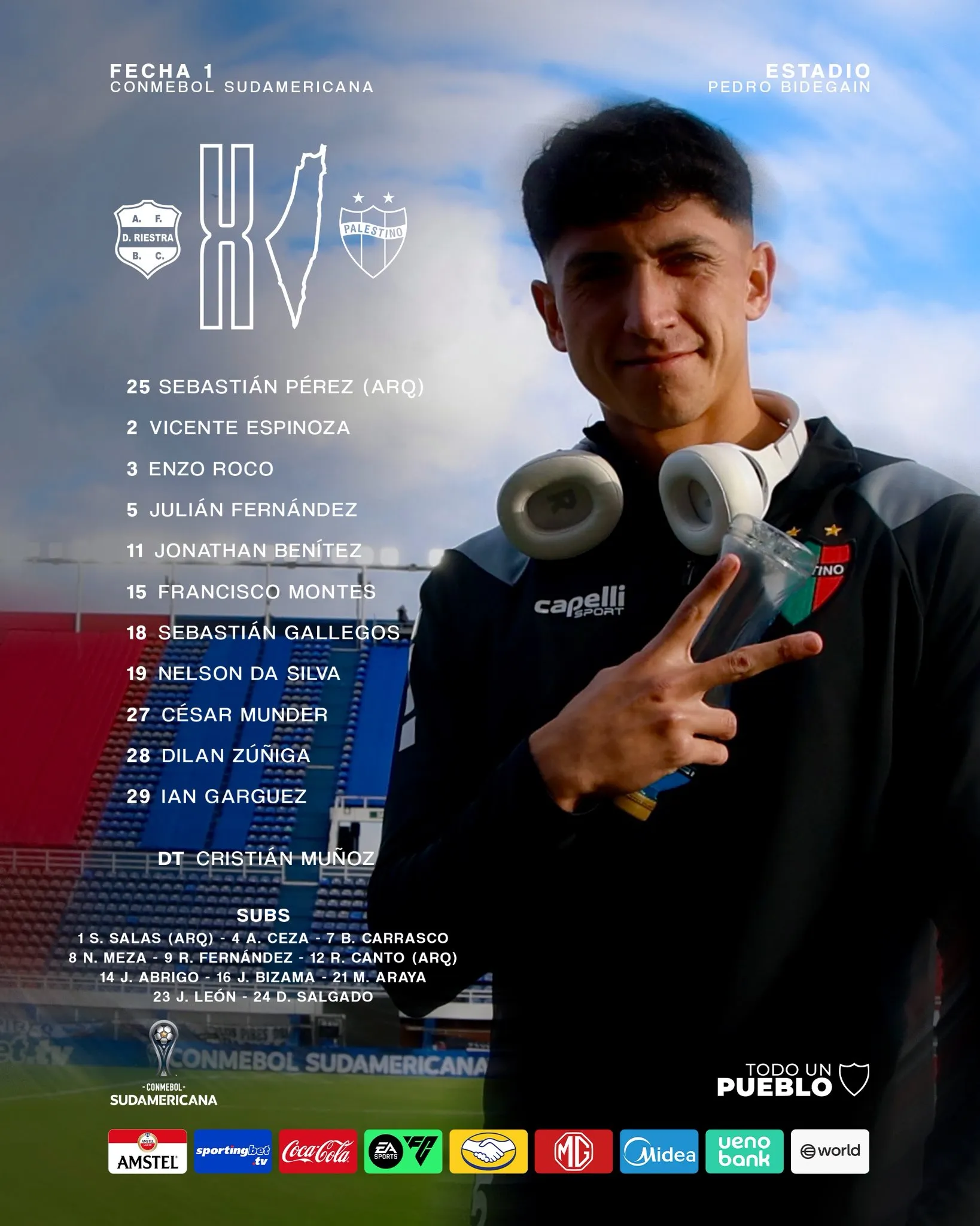 Luego de clasificar de manera agónica, Palestino está listo para iniciar la fase de grupos de la Copa Sudamericana 2026. Este miércoles 8 de abril desde las 18:00 horas los Árabes visitan a Deportivo Riestra por la primera fecha del torneo.