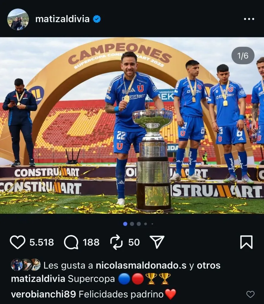 “Felicidades padrino”, tecleó, en alusión al defensa azul ex Colo Colo, quien es el padrino de su hijo nacido hace poco. Eso, en un marco de ola de felicitaciones a Zaldivia en su publicación de Instagram.