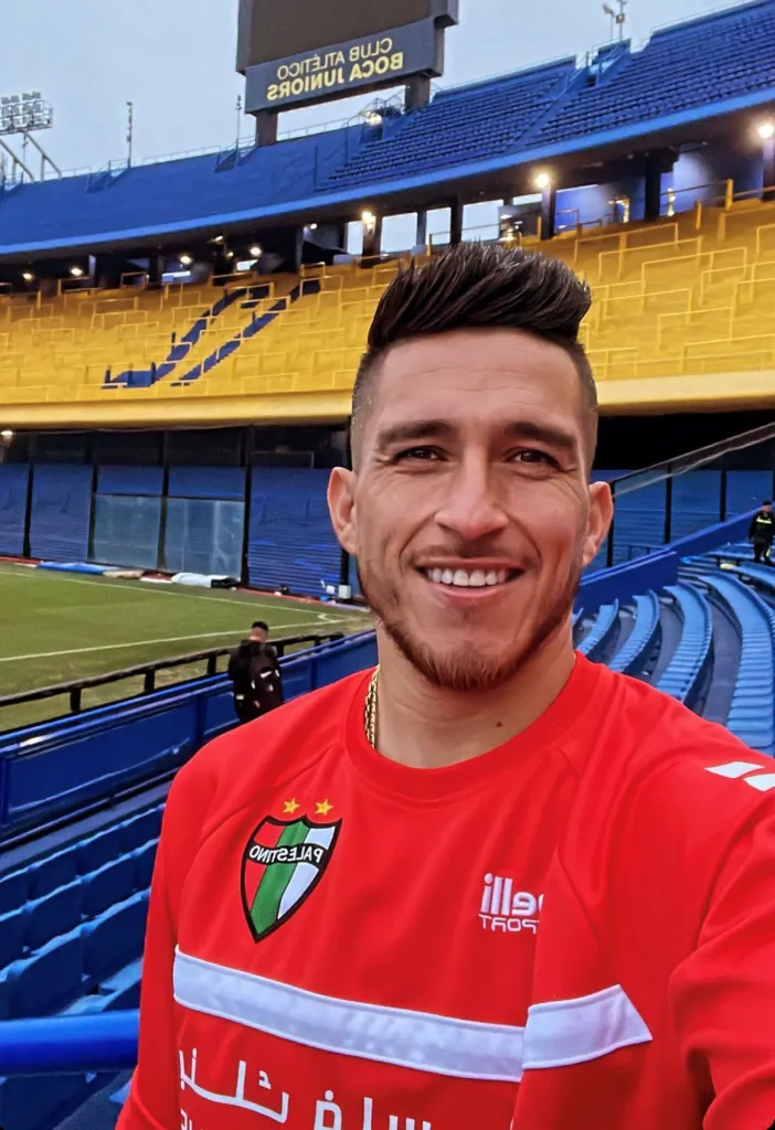 “Conociendo un estadio con historia, La Bombonera”, escribió Bryan Carrasco en sus redes sociales, donde compartió una imagen dentro del recinto deportivo.