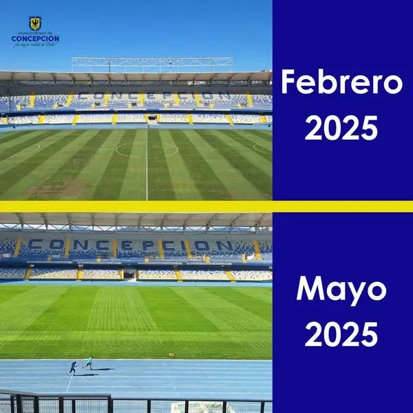 Fue la Municipalidad de Concepción quien compartió una foto comparativa de la cancha del recinto de Collao. Una, en las condiciones que se encontraba en febrero de este año, y la otra de mayo, en mucho mejor estado y afinando detalles para ser entregada al fútbol.