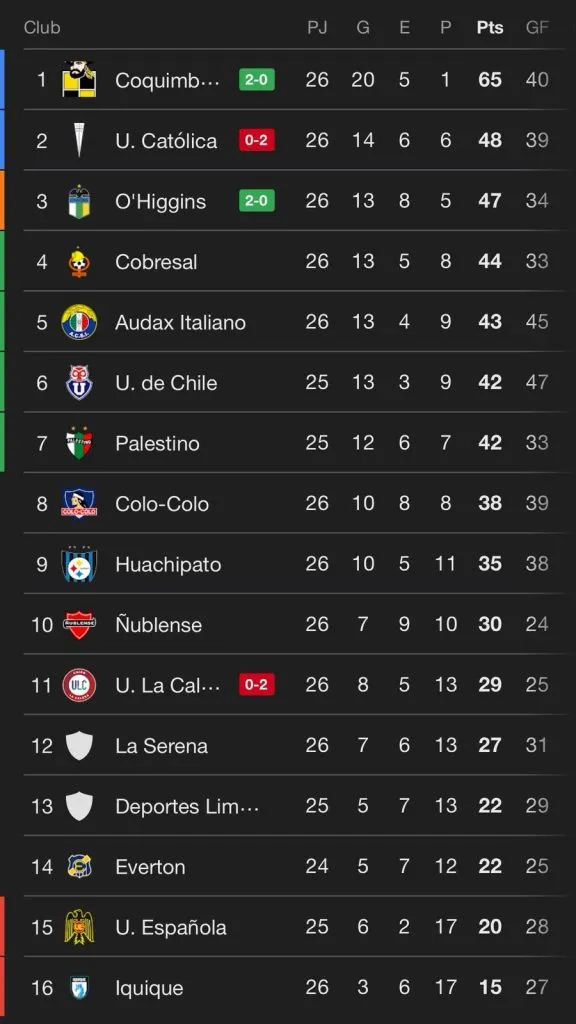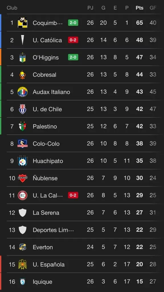 Una impresionante campaña de Coquimbo, que le sacó mucha diferencia de puntos a todos sus competidores, por lo que quedarán en la historia del fútbol chileno.