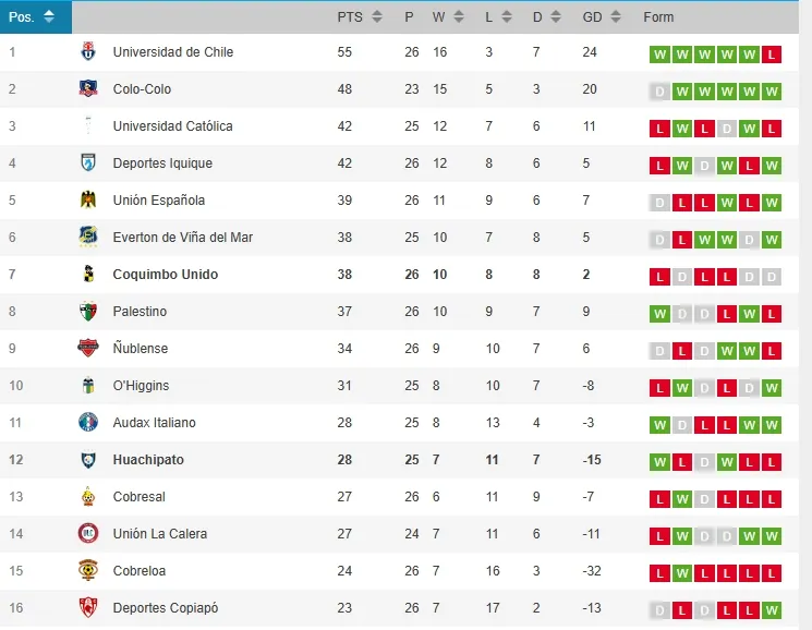 Con estos importantes tres puntos ante los piratas, los acereros dan un gran salto de la tabla de posiciones hasta la posición 12, con 28 puntos acumulados, lo que le permite marcar distancia de las últimas ubicaciones.