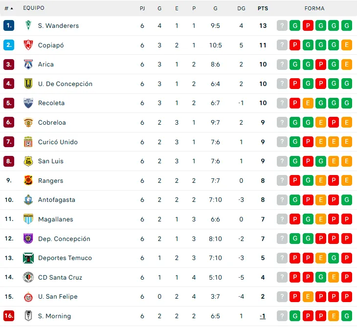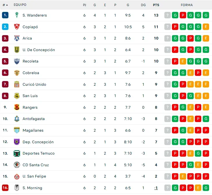 Con cuatro encuentros se cerró la sexta jornada de la Primera B, en donde hubo un nuevo cambio en la cima de la Tabla de Posiciones, donde el principal afectado tras los resultados de la jornada fue Deportes Copiapó, quien además perdió su invicto.