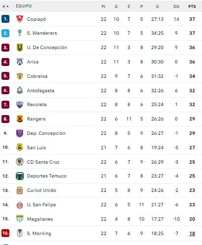 Deportes Concepción fue el gran perdedor de la jornada al quedar por ahora sin el último cupo de la liguilla por el ascenso. Los lilas son novenos con las mismas unidades que Rangers, pero peor diferencia de goles.