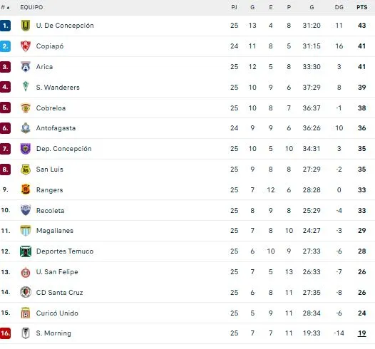 Con ese resultado final, Santiago Wanderers llegó a 39 unidades y quedó a cuatro del líder momentáneo, U. de Concepción. Sin embargo, si Deportes Copiapó vence este lunes a Antofagasta, será el nuevo puntero del torneo.