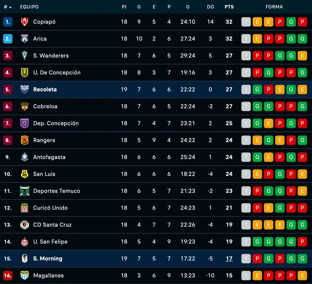 Gracias a esta victoria, los recoletanos escalan hasta el quinto puesto de la clasificación con 27 puntos, metiéndose en puestos de liguilla por el segundo Ascenso. Por su parte, los “microbuseros” se quedan peligrosamente en el penúltimo lugar con 17, dos menos que el colista Magallanes.