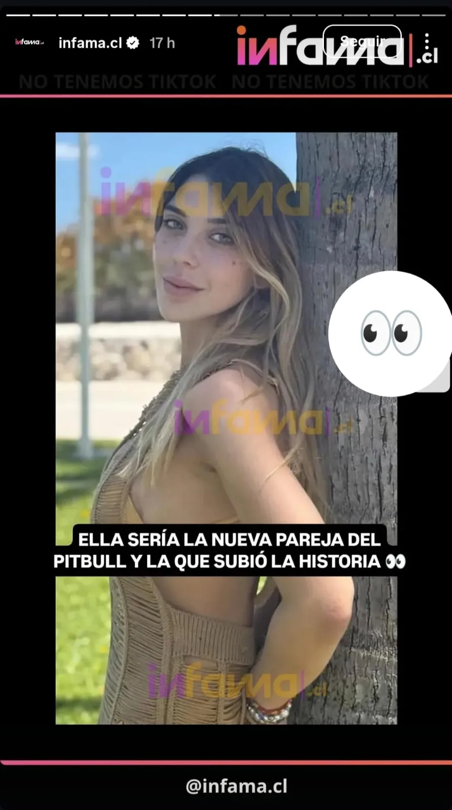 La citada fuente publicó posteriormente una fotografía de la dueña de la publicación. Ahí aluden a que “ella sería la nueva pareja del Pitbull y la que subió la historia”.