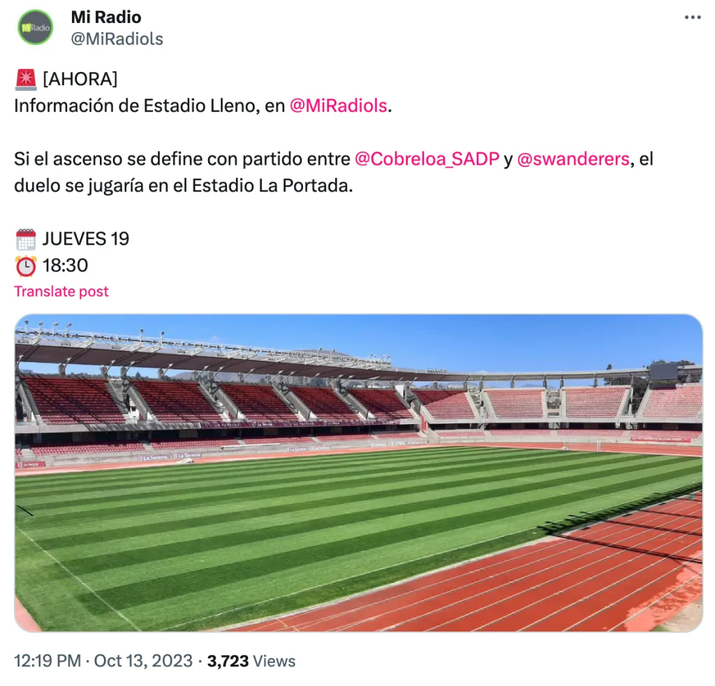 Según informaron en el programa Estadio Lleno, en Mi Radio LS, ya hay fecha, hora y también estadio neutral para albergar el eventual partido entre Cobreloa y Santiago Wanderers.