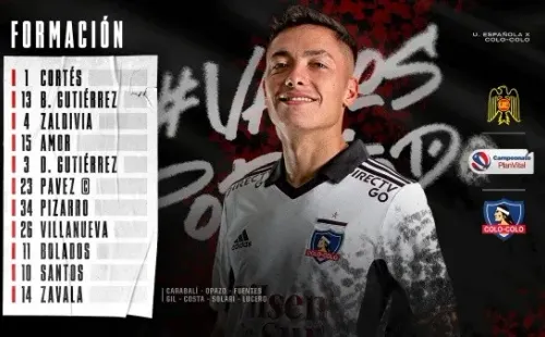 Los albos formarán con Cortés; B. Gutiérrez, Amor, Zaldiviay D. Gutiérrez; Pavez, Pizarro y Villanueva; Bolados, Santos y Zavala.La banca será con Carabalí, Opazo, Fuentes, Gil, Costa, Solari y Lucero.