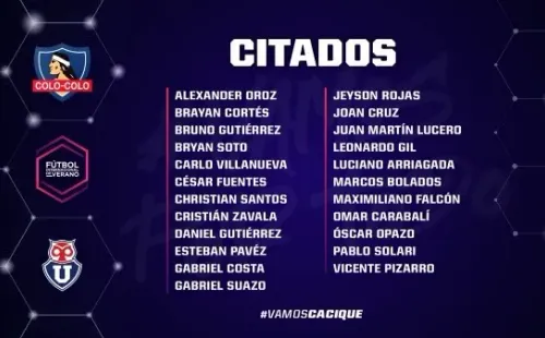 Revisa a los citados de Colo Colo para el Superclásico de pretemporada ante la U