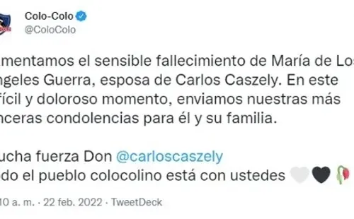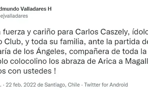 “Mucha fuerza Don Carlos Caszely. Todo el pueblo colocolino está con ustedes”, fue parte del mensaje de los albos.