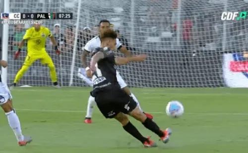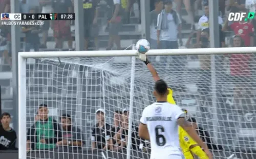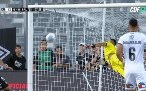 Cerca de mitad de cancha Henry Sanhueza sacó un balonazo profundo que tomó rumbo al arco y bajó peligrosamente para Colo Colo. Brayan Cortés extremó recursos y saltó lo más que puso para meter la mano. El balón se desvió al impactar en el travesaño.