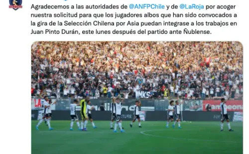 Revisa el mensaje de Colo Colo agradeciendo a la ANFP y la selección chilena