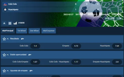 Para Juégalo, el gran favorito para ganar este partido de la fecha 19 del Campeonato Nacional 2022 es Colo Colo, que paga 1,4 veces lo que juegues, por sobre los 7,64 que paga Huachipato si piensas que triunfará en el Estadio Monumental. Ahora, el empate entre ambos paga 4,72 veces lo que apuestes.