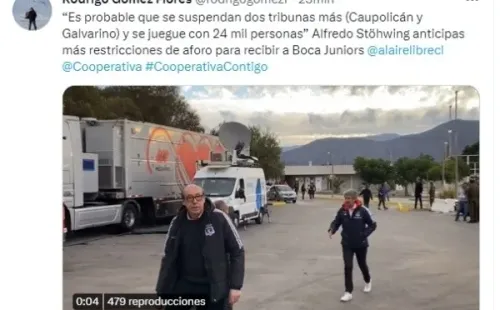 “Es probable que se suspendan dos tribunas más (Caupolicán y Galvarino) y se juegue con 24 mil personas”, comentó el presidente de Colo Colo, Alfredo Stöhwing, según el reporte del periodista de radio Cooperativa, Rodrigo Gómez.