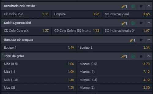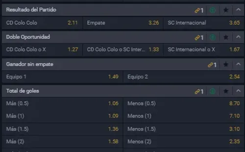 Cuotas: ¿Quién es el favorito para Colo Colo vs Internacional de Porto Alegre por la Copa Sudamericana?