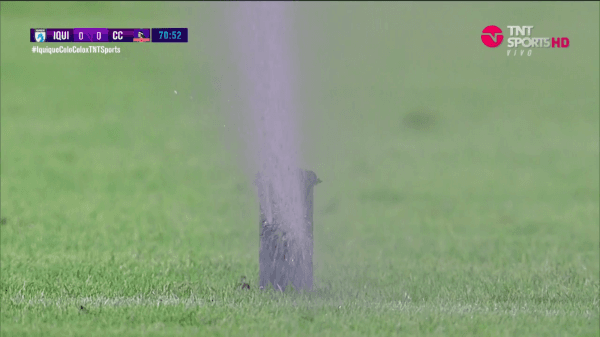 Los regadores salieron en medio del Deportes Iquique vs Colo Colo.